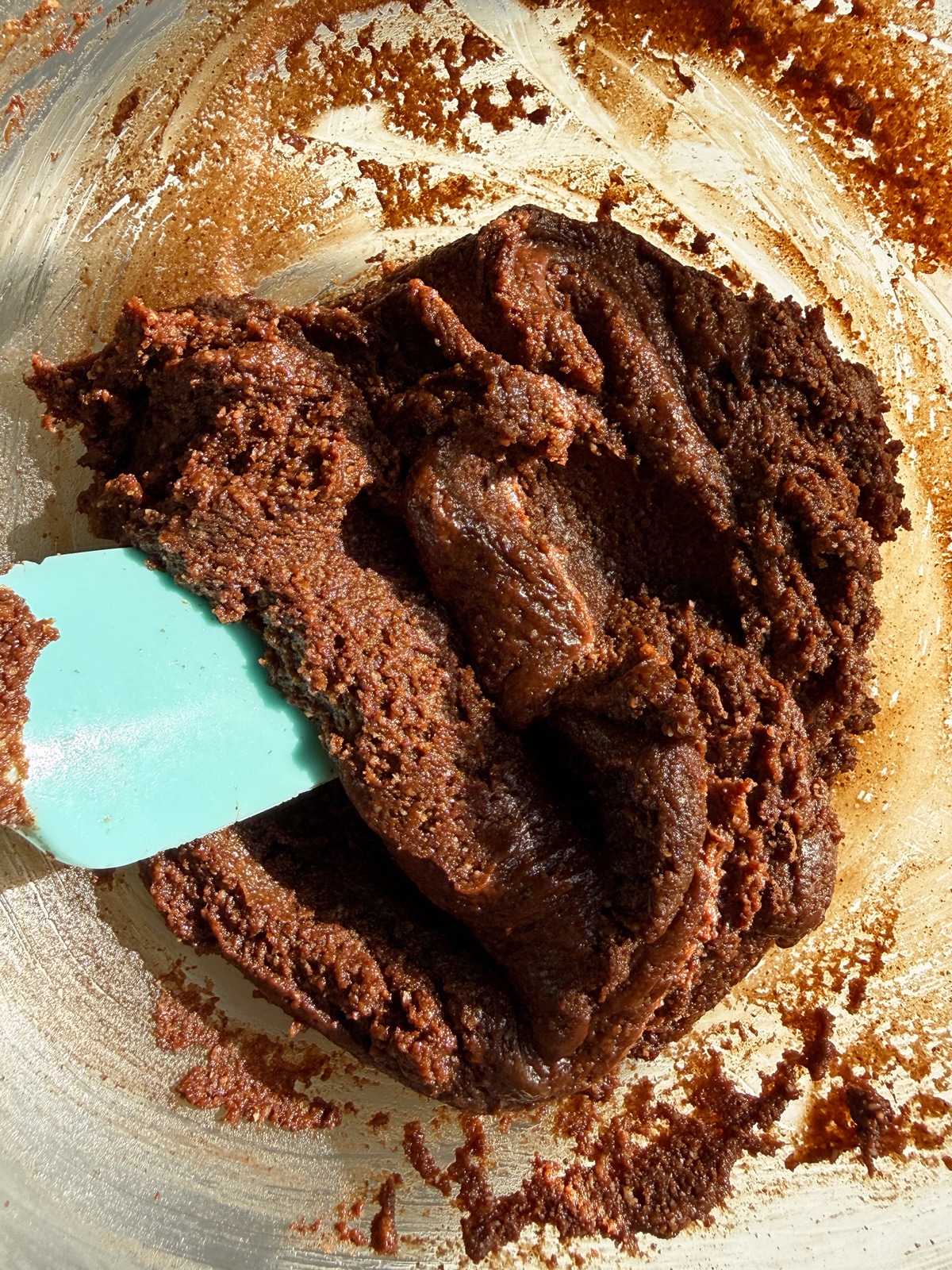 - Add in remaining cookie ingredients.Β Mix with a spatula until well combined.