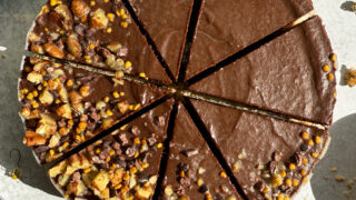 This paleo chocolate torte is the ultimate no-bake dessert to satisfying your chocolate cravings. It has a simple pecan and coconut crust that's topped with a rich, creamy chocolate filling. In addition, this flourless torte is paleo, vegan, and keto friendly.